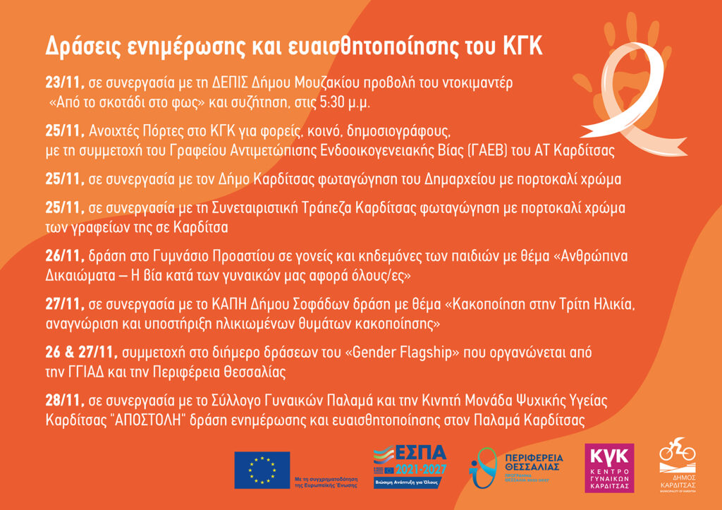Δράσεις Ενημέρωσης και Ευαισθητοποίησης του Κέντρου Γυναικών Καρδίτσας την Διεθνή Ημέρα για την Εξάλειψη της Βίας Κατά των Γυναικών