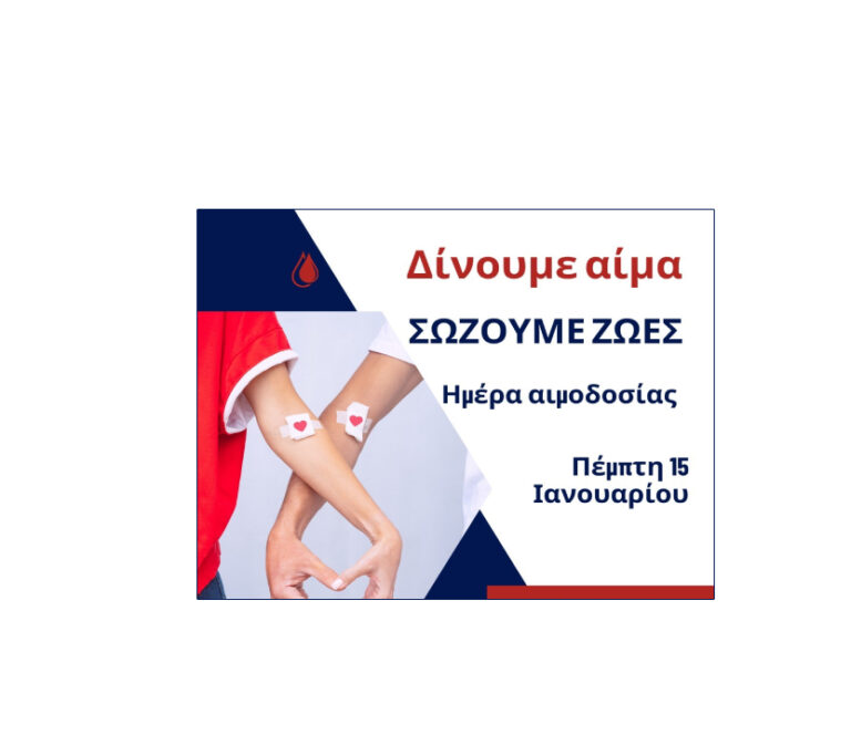 Το Σωματείο Εργαζομένων του Συλλόγου Αυτισμού Λάρισας, σε συνεργασία με την κινητή μονάδα αιμοδοσίας του Πανεπιστημιακού Γενικού Νοσοκομείου Λάρισας, διοργανώνουν δράση αιμοδοσίας την Πέμπτη 15